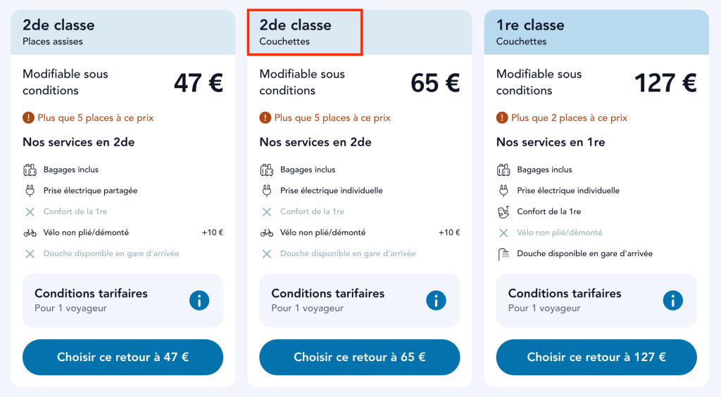Option pour ceux qui préfères le train de jour 😃